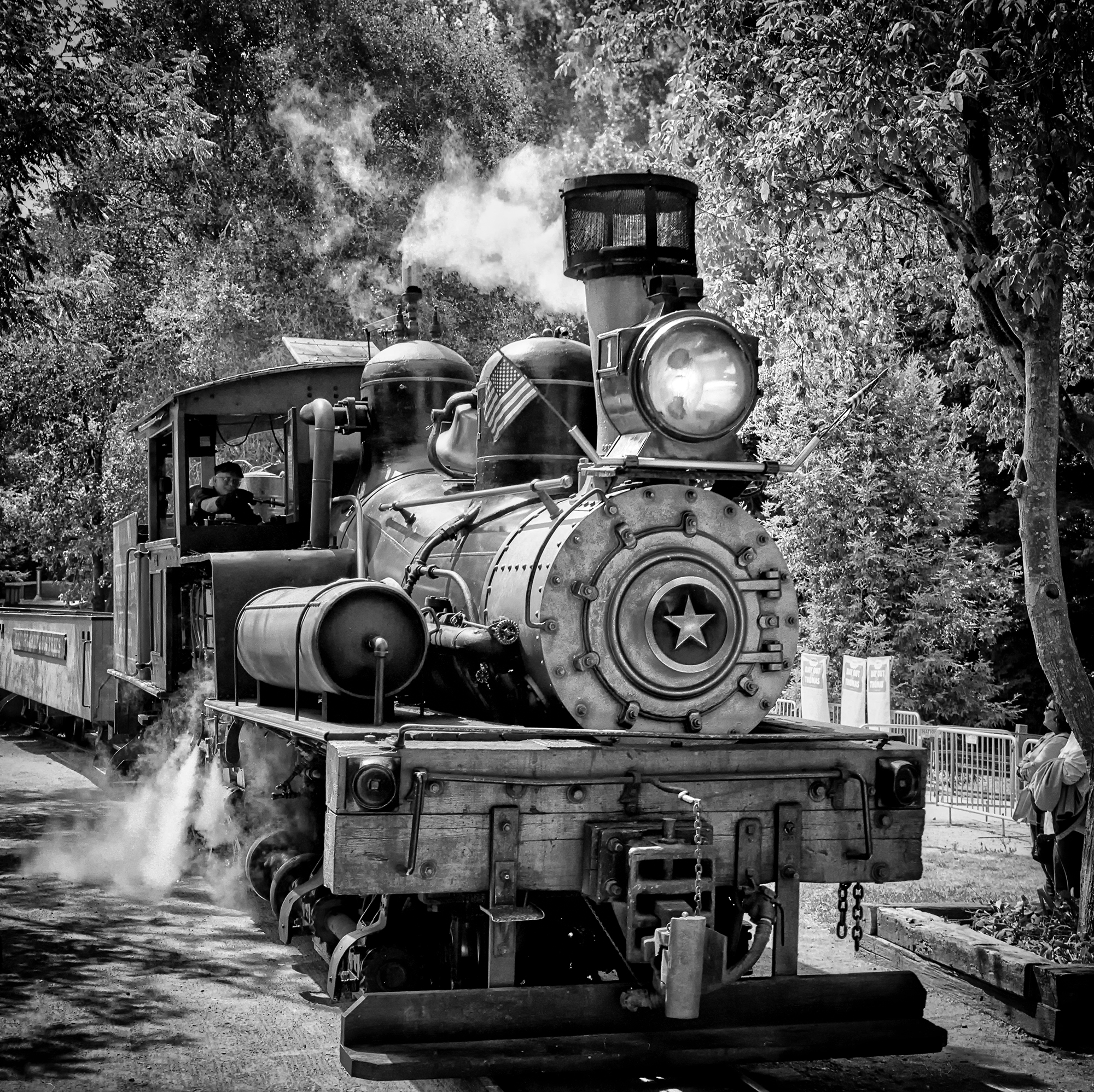 Dixiana, a 160 yo steam train arriving at the station to pick us up