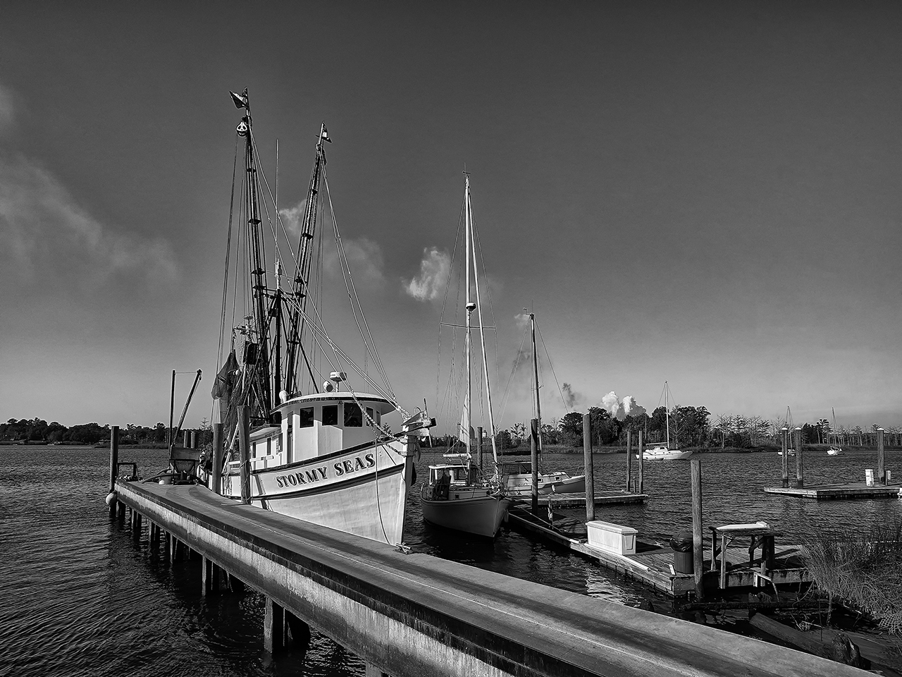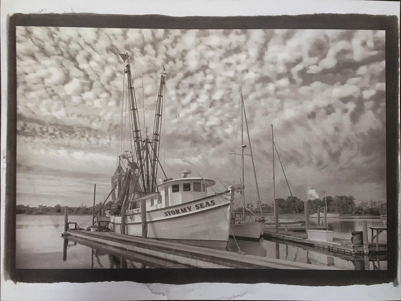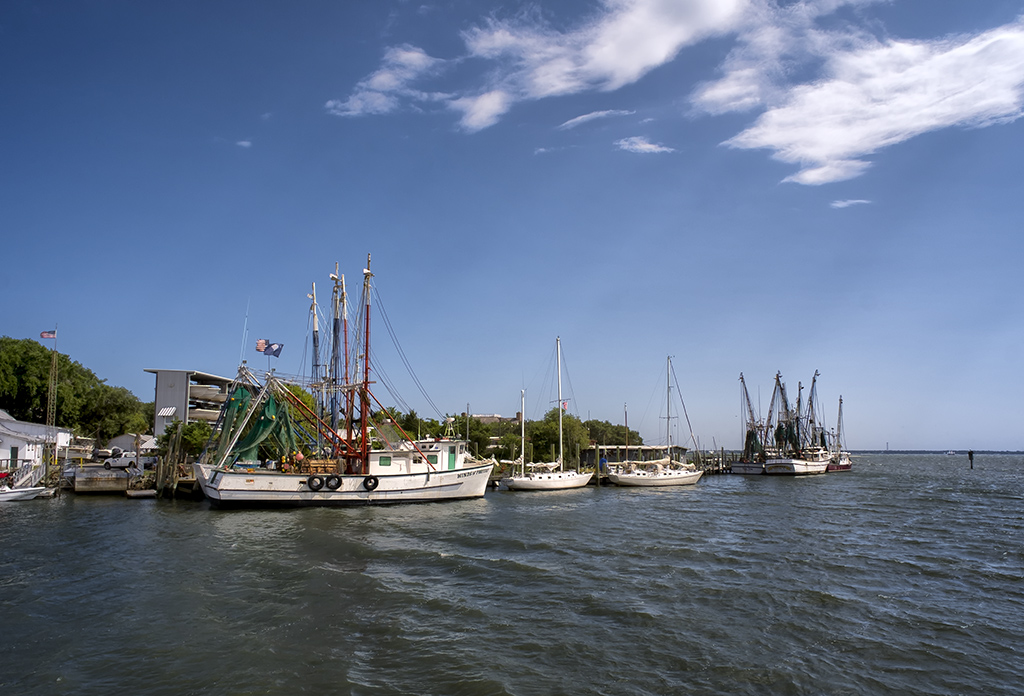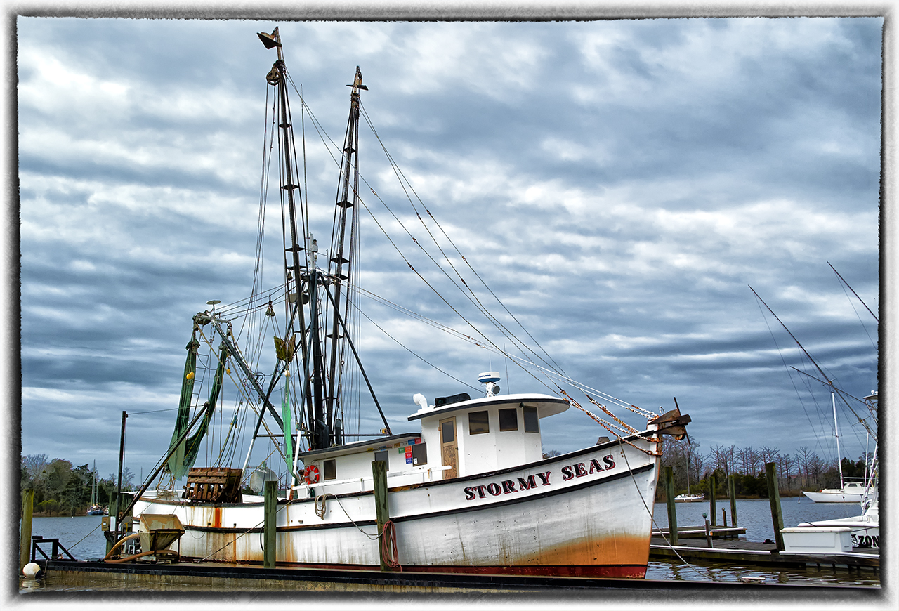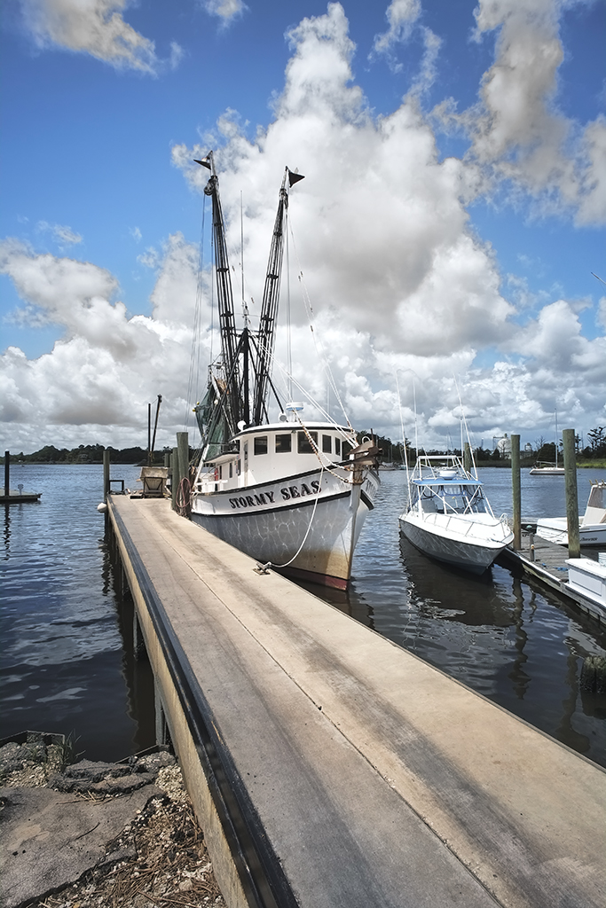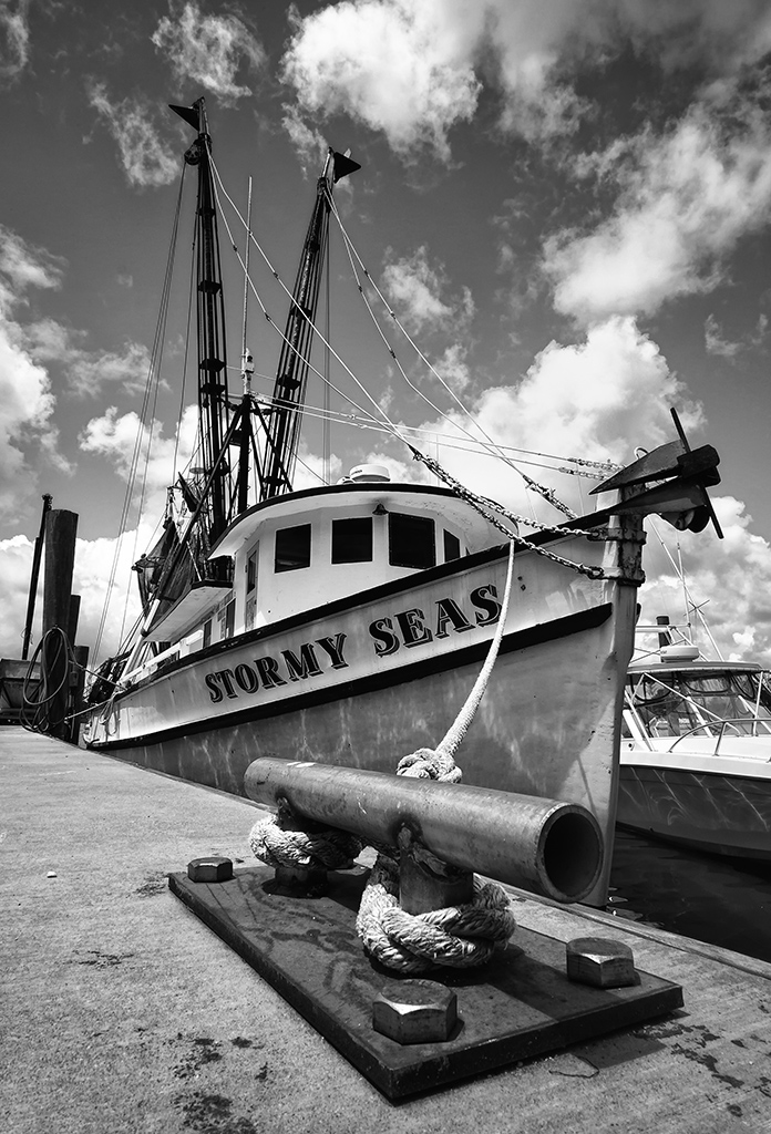 So as you can see, I have now walked around to the dock the shrimper is on and take a bow shot composing to keep the other boats, docks and other muck out of the image.  I still set it up to get the great storm clouds.  A much better shot than the first, no?