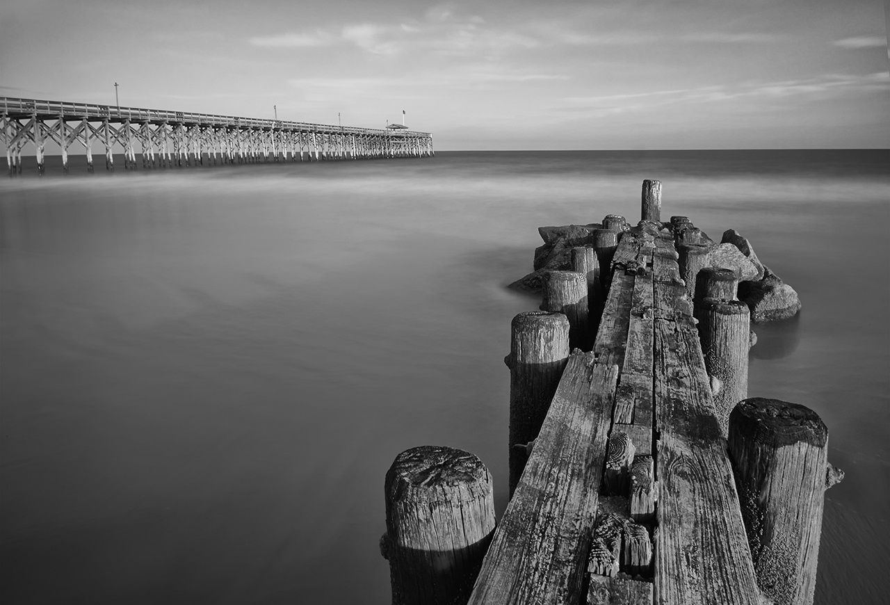 The B&W 2-fer, The pier & groin, Pawleys Island Twilight