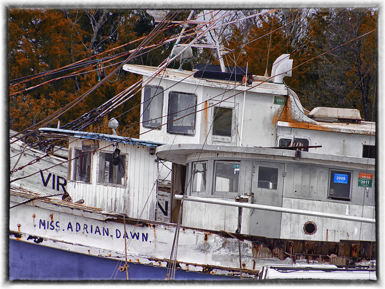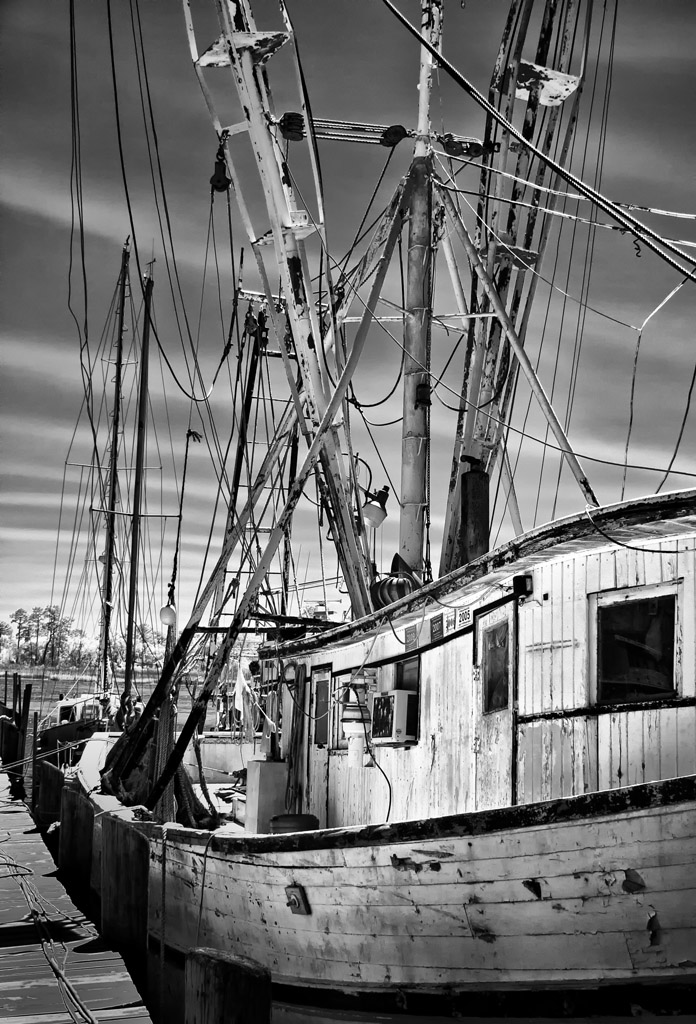 There is something about Shrimpers… I cannot get enough of them and find myself visiting them again and again.  I love the dilapidated nature of them and even though they are in such rough condition they seem to venture out into the deep time after time.  Perhaps they are a reflection of the men who sail them, rough hewn, salty men, eking out a living from the sea.  Regardless, they are things of photographic beauty and deserve to be documented for history. You see, they are vanishing from sight.  Shrimp seems to mainly come for fresh water farm ponds in the lower americas and soon these beautiful boats will be a thing of the past.