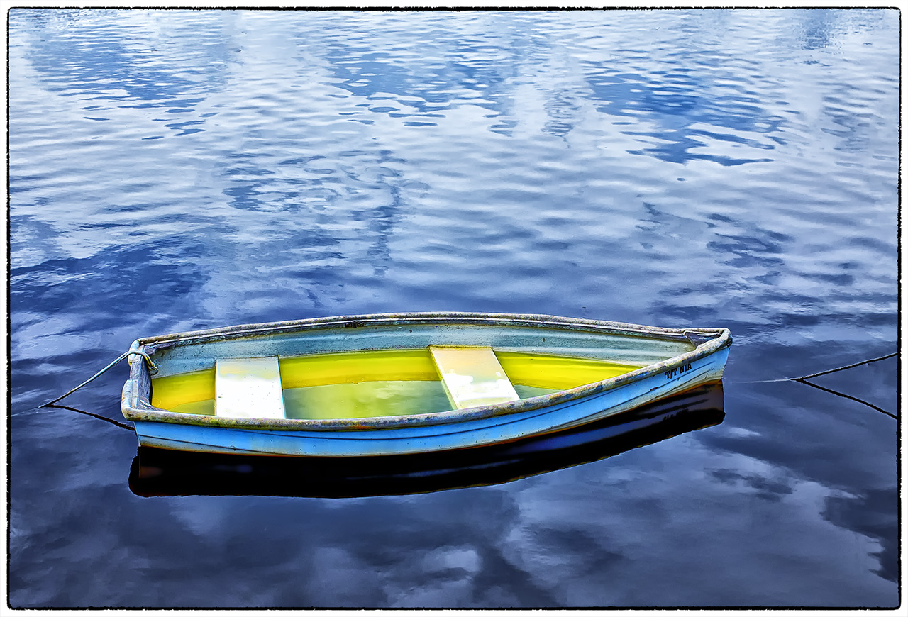 Next I move further in, closer to the bow, looking at the painted boat name and the great structure and contrasts hidden the the hull of the boat.  As I stand here I think to myself that having the anchor cut off is a bit distracting but then decide that it adds a hint, or suggesting more out of scene that adds a bit is mystery to the image.  Again, in post, I have added a bit of mood to the clouds also!